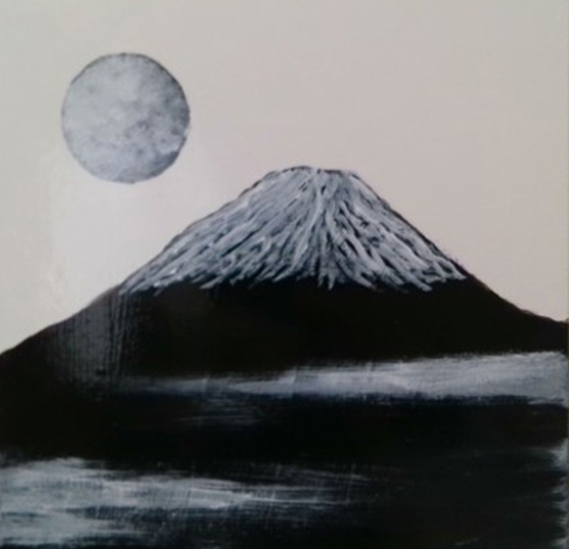 やわらかな光で包み込んでくれる月と日本の象徴である富士山を、心込めて描きました。